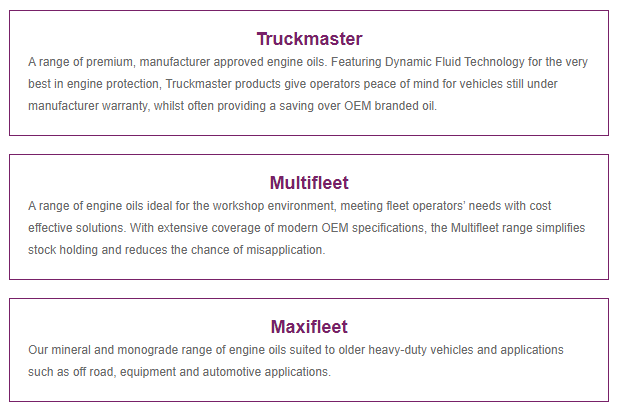 Our heavy-duty engine oils have been rationalised to ensure the new ranges are easy to select from. The complete range is both comprehensive in coverage and competitive within the marketplace.